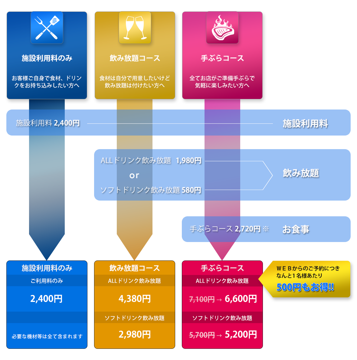 ※ 土曜、日曜、祝日のシーサイドDXエリアのご利用につきましては、飲み放題のご注文が必須になります。予めご了承ください。